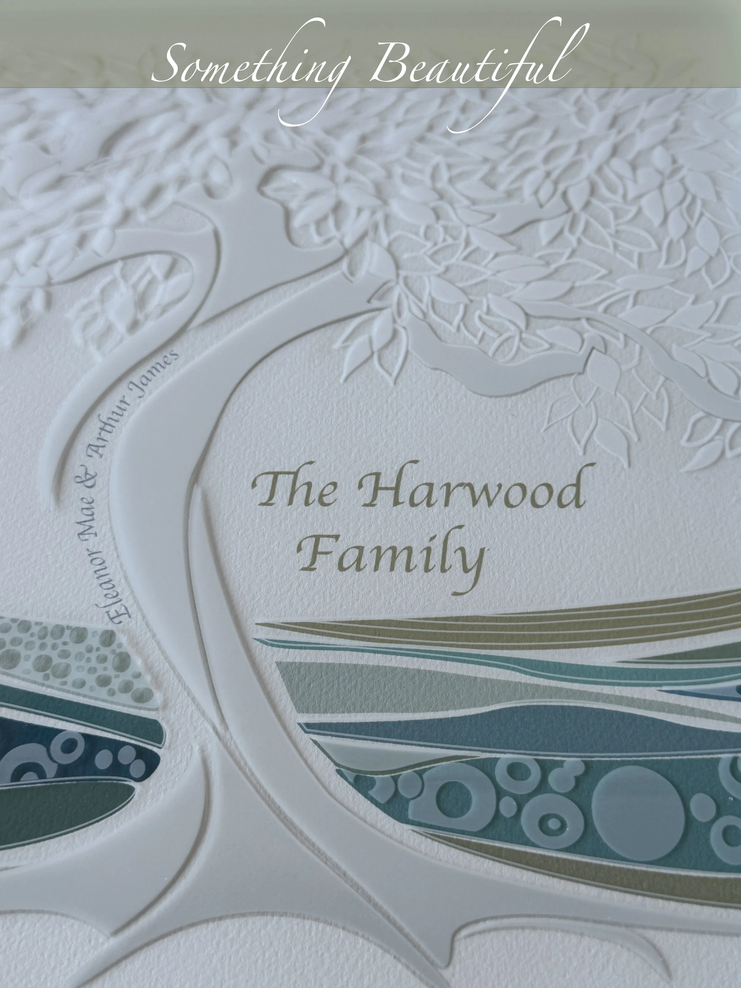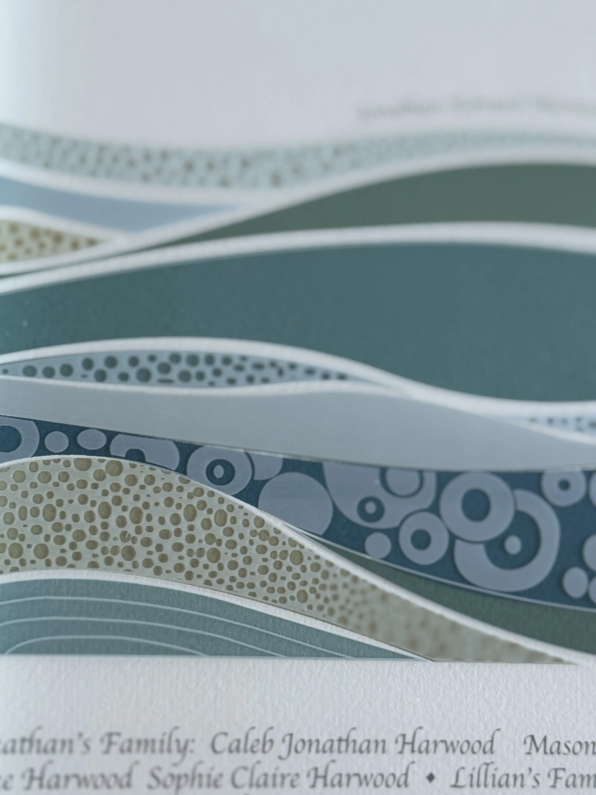 Shell Rummel’s Simplicity Series continues with her visual interpretation of a modern Family Tree. Our Legacy (Generation to Generation) is a minimalist, dimensional design. Your family names flow outward within the concentric circles. The background is thoughtfully designed to visually symbolize the gradual passage of time.